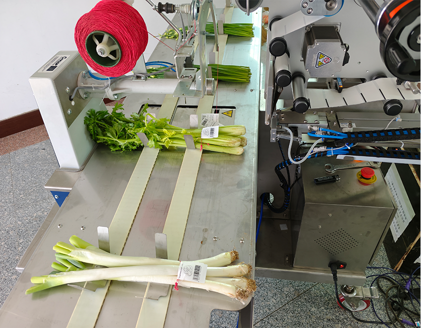 適用于大型超市、蔬菜生產(chǎn)基地。設(shè)備采用彈力繩捆扎技術(shù),即時(shí)打印粘貼標(biāo)簽、捆扎、切割一次完成,不傷菜、無(wú)污染,效率1800束/小時(shí),節(jié)省大量人工。