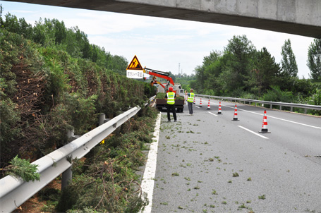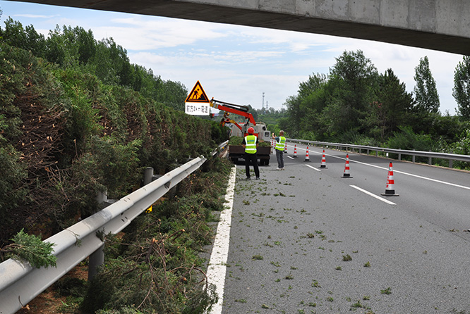 使用1.8噸輕卡承載,可修剪中分帶綠、公路右側(cè)高枝粗枝: